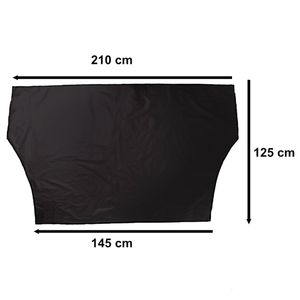 Magnetyczna kurtyna na przednią lub tylną szybę chroniąca przed słońcem i mrozem. Po złożeniu zajmuje mało miejsca. Łatwa w czyszczeniu. Tworzywo: poliester. Szerokość w dolnej części: 145cm. Szerokość w górnej części: 210cm. Wysokość: 125cm.